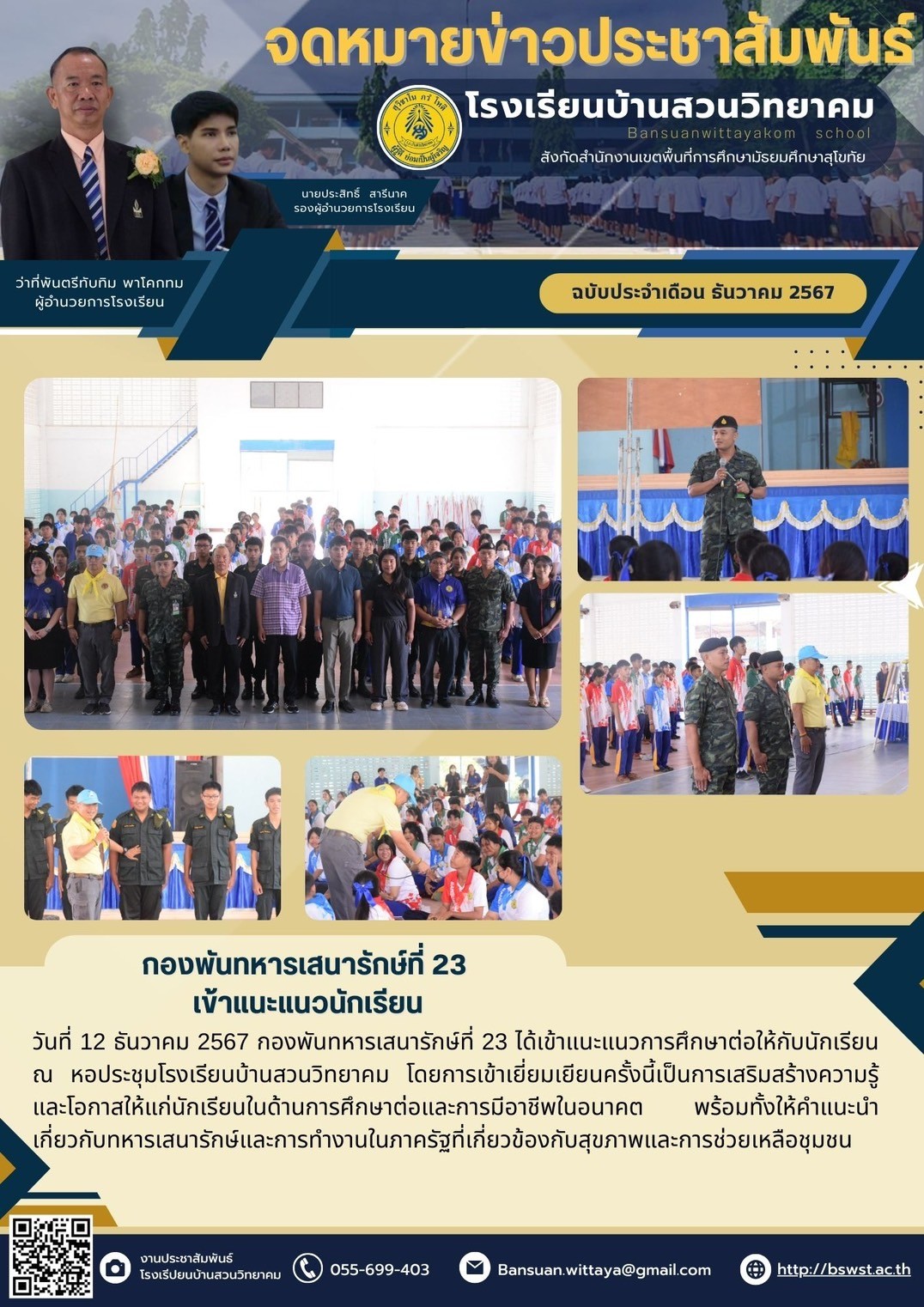 กองพันทหารเสนารักษ์ที่ 23 เข้าแนะแนวนักเรียน