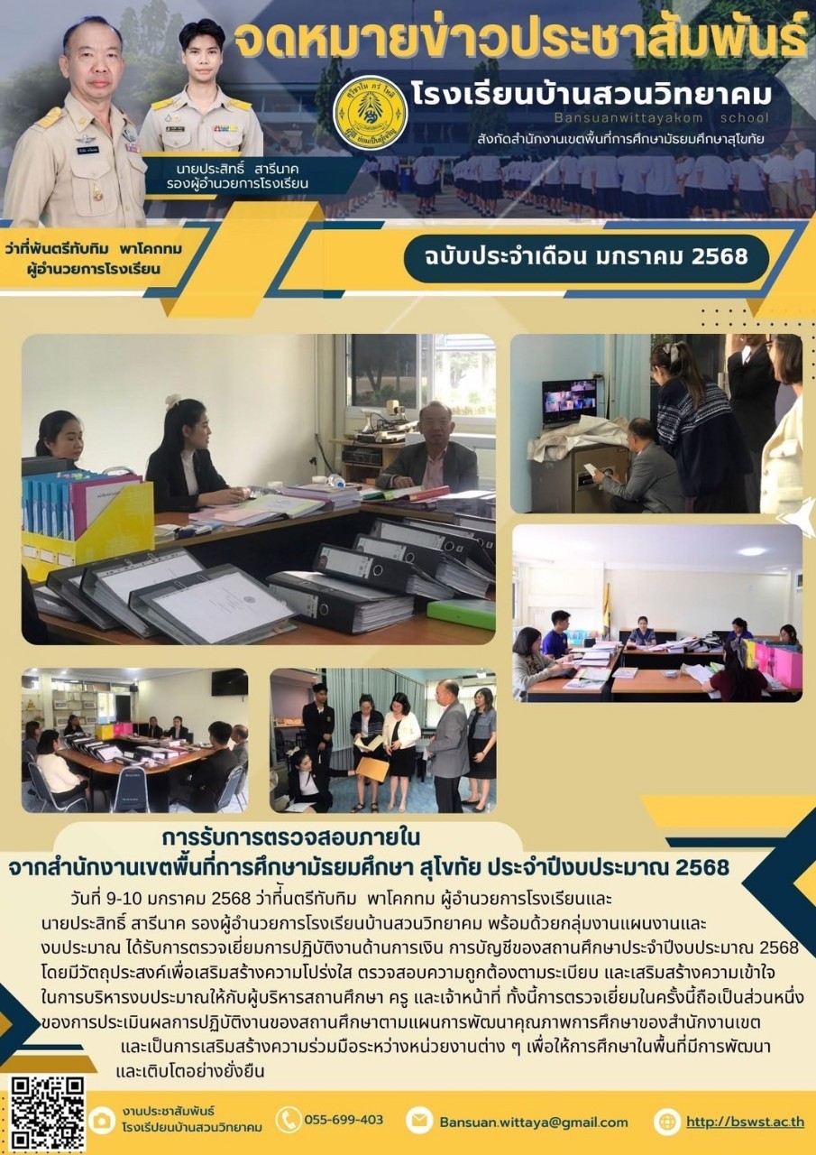 การรับการตรวจสอบภายในจากสำนักงานเขตพื้นที่การศึกษามัธยมศึกษาสุโขทัย ประจำปีงบประมาณ 2568