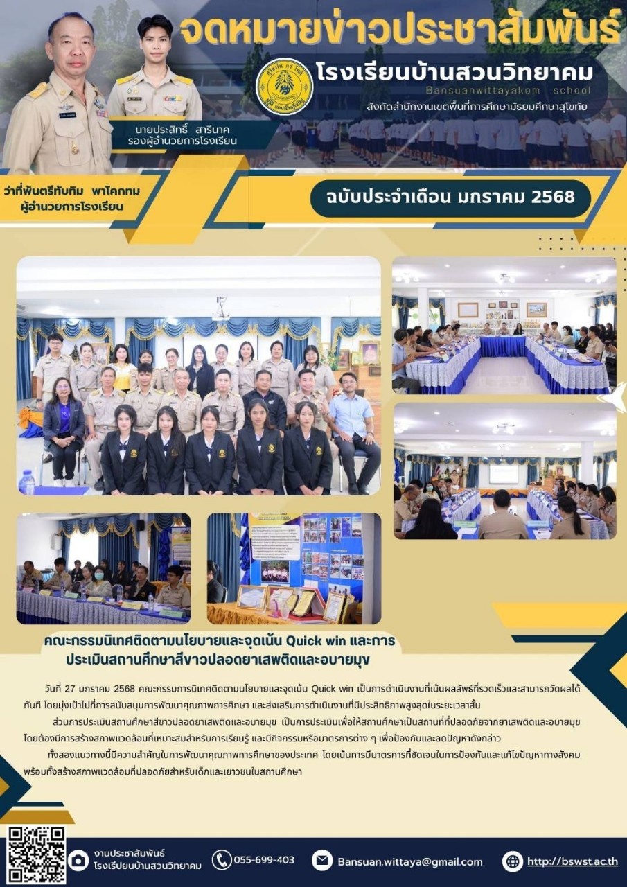 คณะกรรมการนิเทศติดตามนโยบายและจุดเน้น Quick win และการประเมินสถานศึกษาสีขาวปลอดยาเสพติดและอบายมุข
