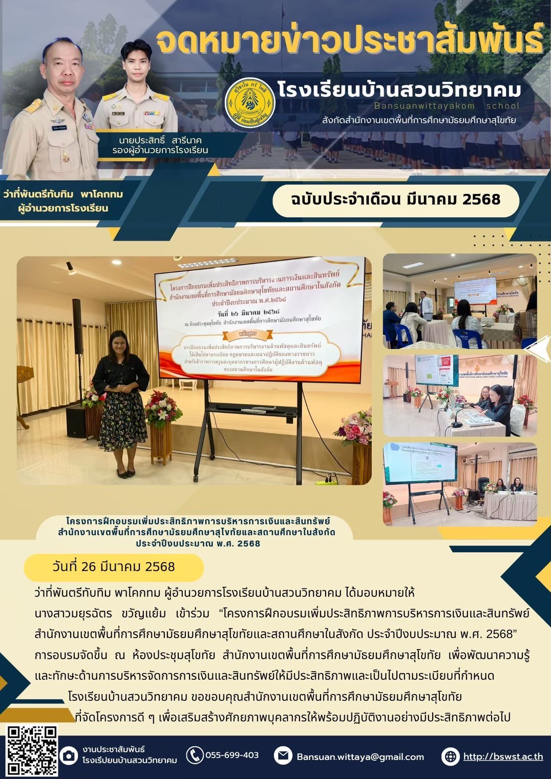 โครงการฝึกอบรมเพื่อเพิ่มประสิทธิภาพการบริหารการเงินและสินทรัพย์ สำนักงานเขตพื้นที่การศึกษามัธยมศึกษาสุโขทัยและสถานศึกษาในสังกัด ประจำปีการศึกษา พ.ศ. 2568