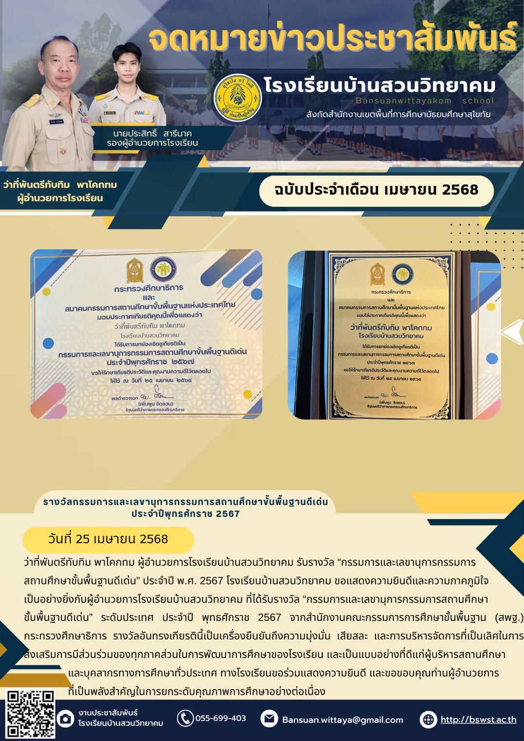 รางวัลกรรมการและเลขานุการกรรมการสถานศึกษาขั้นพื้นฐานดีเด่น ประจำปีพุทธศักราช 2567