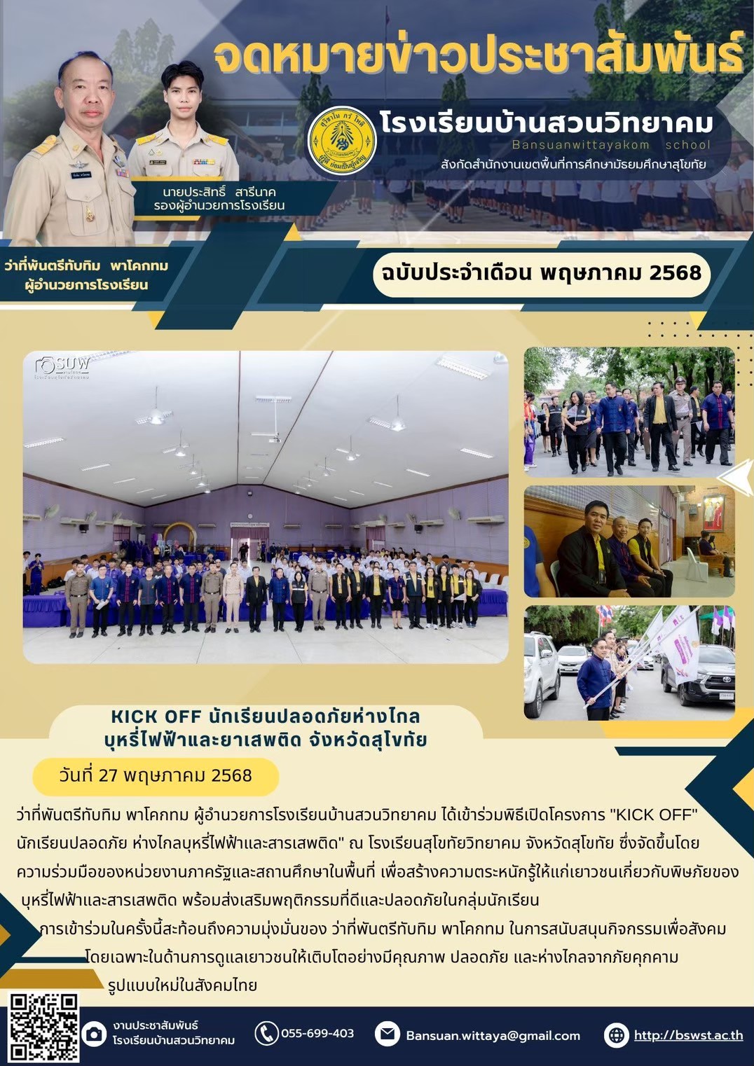 KICK OFF นักเรียนปลอดภัยห่างไกลบุหรี่ไฟฟ้าและยาเสพติด จังหวัดสุโขทัย