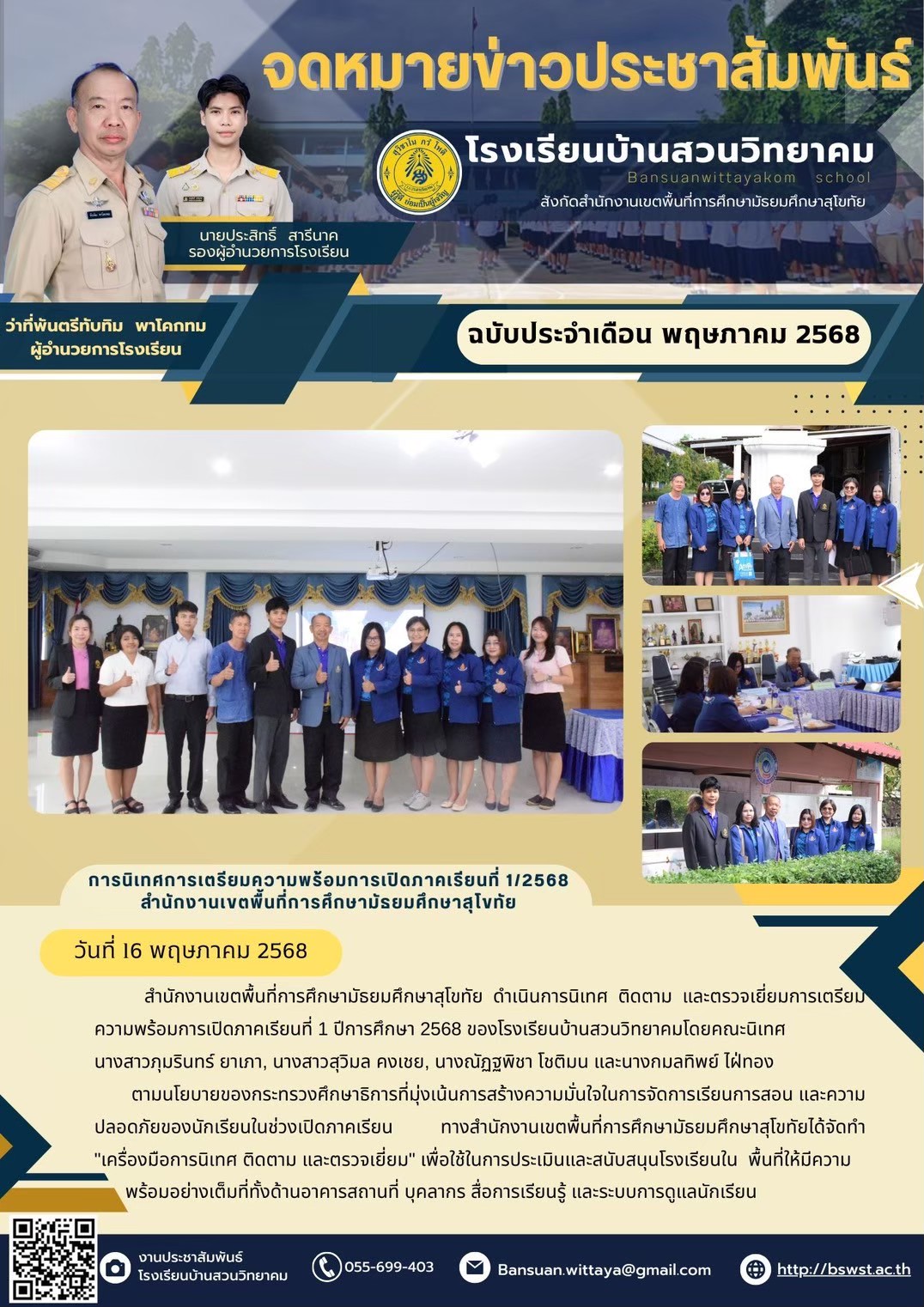 การนิเทศการเตรียมความพร้อมการเปิดภาคเรียนที่ 1/2568 สำนักงานเขตพื้นที่การศึกษามัธยมศึกษาสุโขทัย