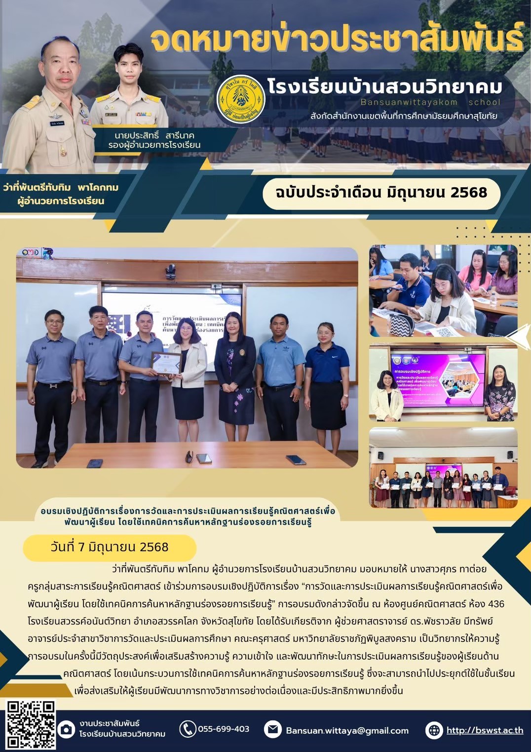 อบรมเชิงปฏิบัติการเรื่องการวัดและการประเมินผลการเรียนรู้คณิตศาสตร์เพื่อพัฒนาผู้เรียน โดยใช้เทคนิคการค้นหาหลักฐานร่องรอยการเรียนรู้