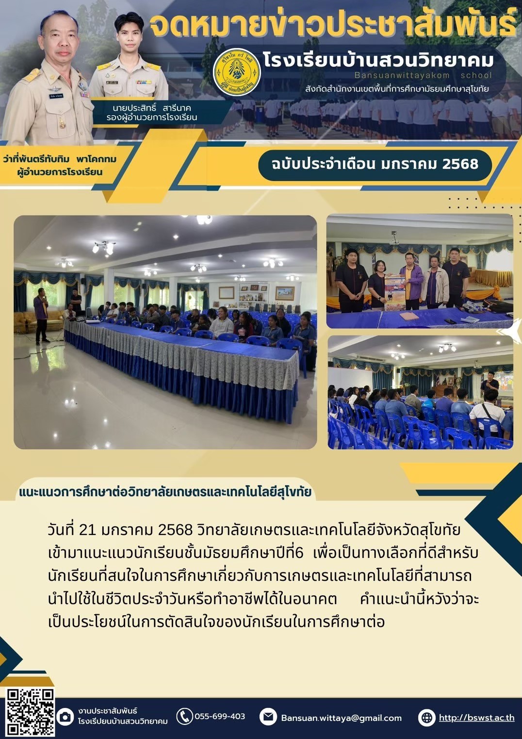 แนะแนวการศึกษาต่อวิทยาลัยเกษตรและเทคโนโลยีสุโขทัย