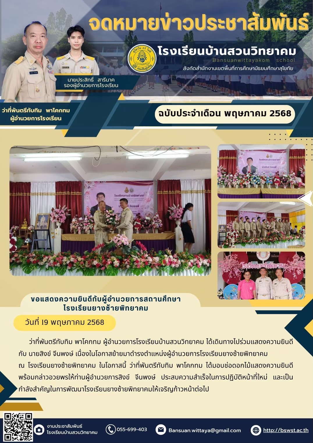 ขอแสดงความยินดีกับผู้อำนวยการสถานศึกษา โรงเรียนยางซ้ายพิทยาคม